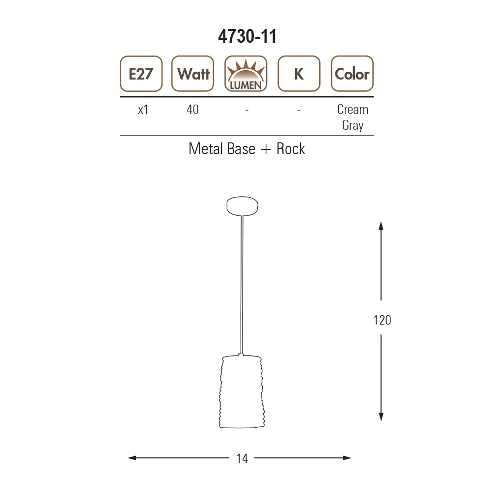 ÖZCAN AYDINLATMA 4730 SERİSİ E27*1 DEKORATİF TEKLİ KREM GÖVDE BETON SARKIT (4730-14,29) AMPUL HARİÇTİR
