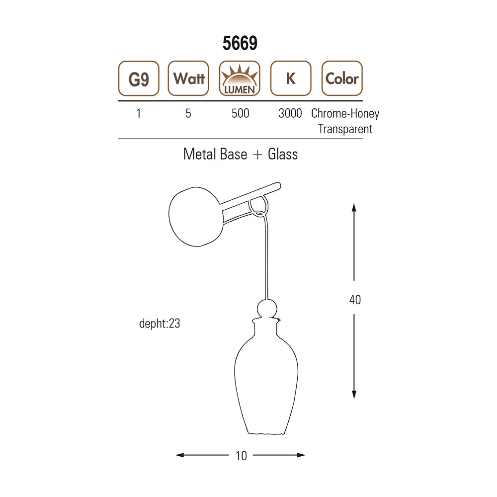 ÖZCAN AYDINLATMA 5669 SERİSİ G9*1 SARI GÖVDE DEKORATİF FÜME(KROM) CAMLI APLİK (5669-APL,02) AMPUL HARİÇTİR