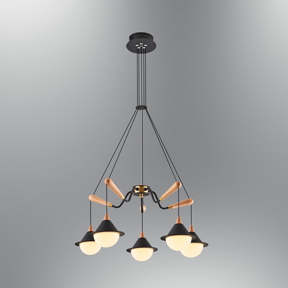 ÖZCAN AYDINLATMA 5678 SERİSİ 25W LEDLİ SİYAH GÖVDE 5 Lİ DEKORATİF SARKIT AVİZE 3000K SARI IŞIK (5678-5A)