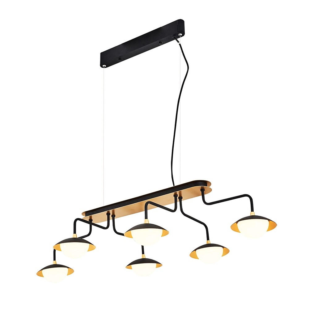 ÖZCAN AYDINLATMA 5685 SERİSİ 30W LEDLİ SİYAH GÖVDE 6 LI SIRALI MASA ÜSTÜ SARKIT AVİZE 3000K SARI IŞIK (5685-6AS)