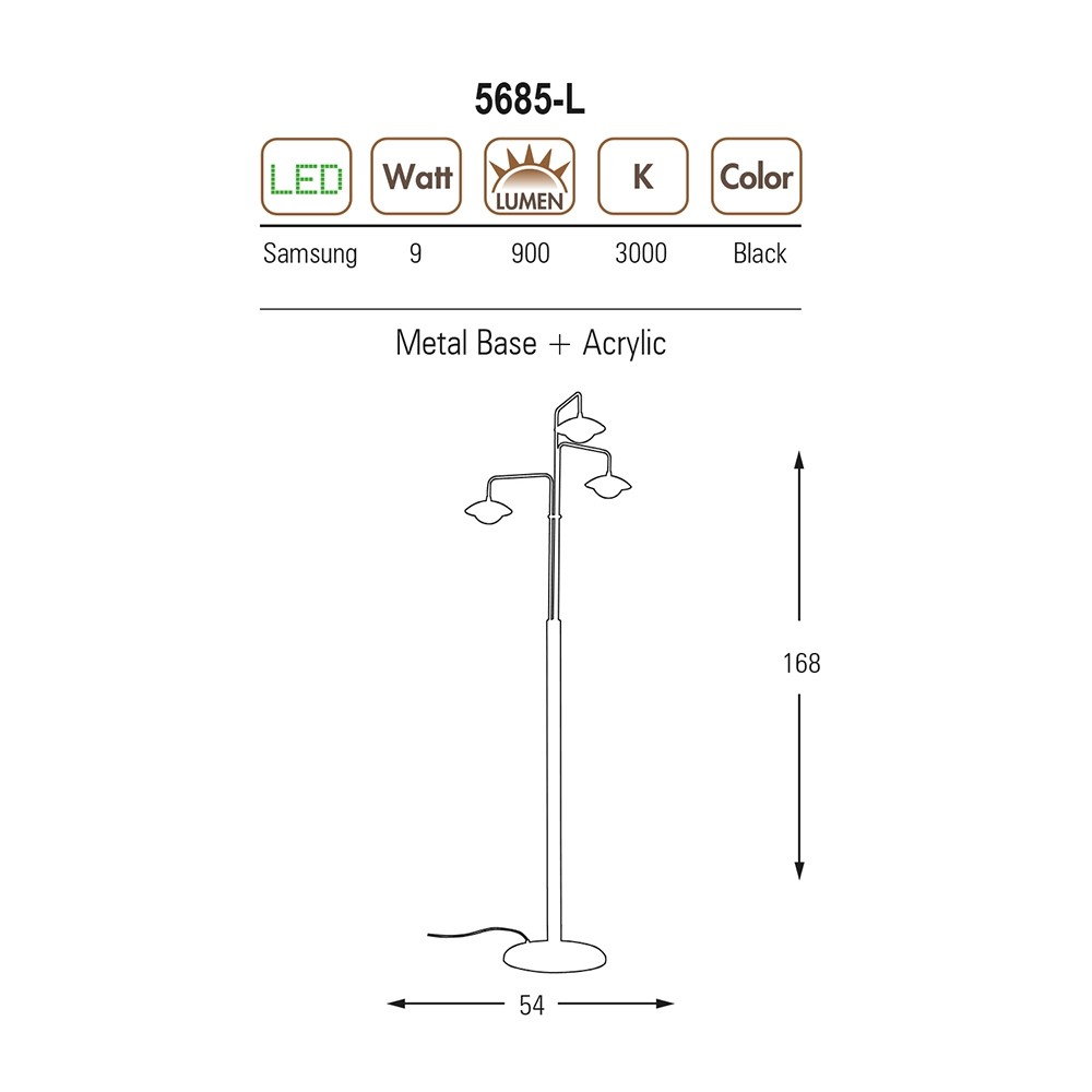 ÖZCAN AYDINLATMA 5685 SERİSİ 45W LEDLİ SİYAH GÖVDE 9 LU ARMATÜR / PLAFONYER 3000K SARI IŞIK (5685-9)
