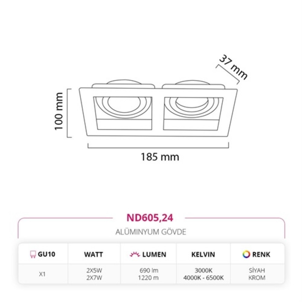 Nevo Sıva Altı İkili Led Spot Siyah Krom Siyah ND605