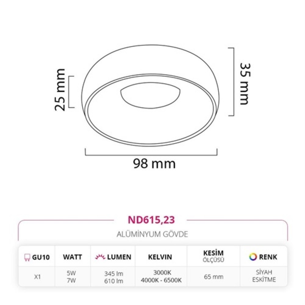 Nevo Sıva Altı Led Spot Siyah Eskitme ND615