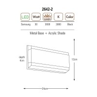 ÖZCAN AYDINLATMA 2642 SERİSİ 30W LEDLİ DUVAR APİLİĞİ SİYAH GÖVDE 3000K SARI IŞIK (2642-2)