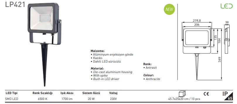 JUPİTER LP421 20W KAZIKLI LED PROJEKTÖR 6500K (IP65)
