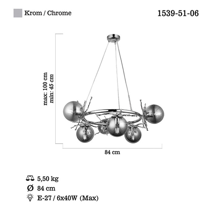 | ÜRÜN AÇIKLAMA | LUMENO 6 LI KROM AVIZE 6XE27 |