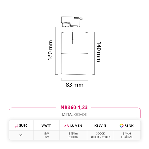 Işık akısı : 5W - 345 lm / 7W - 610 lm