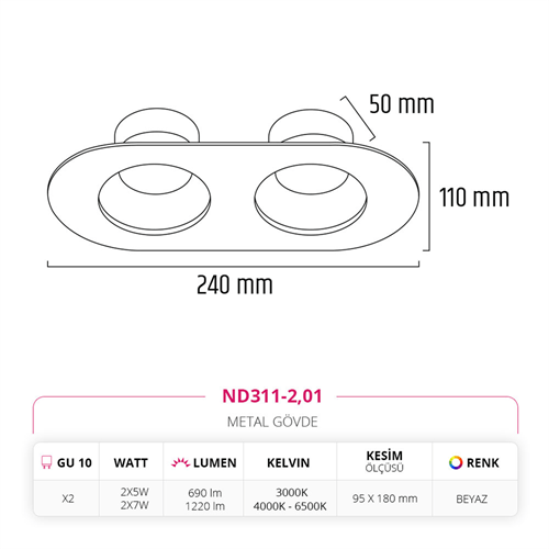 Nevo Sıva Altı İkili Led Spot Beyaz ND311-2