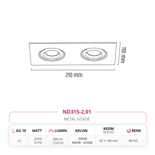 Işık akısı: 2x5W - 690 LM / 2x7W 1220 LM