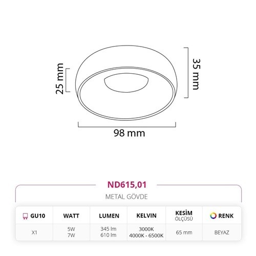 Işık akısı: 5W - 345 LM / 7W - 610 LM