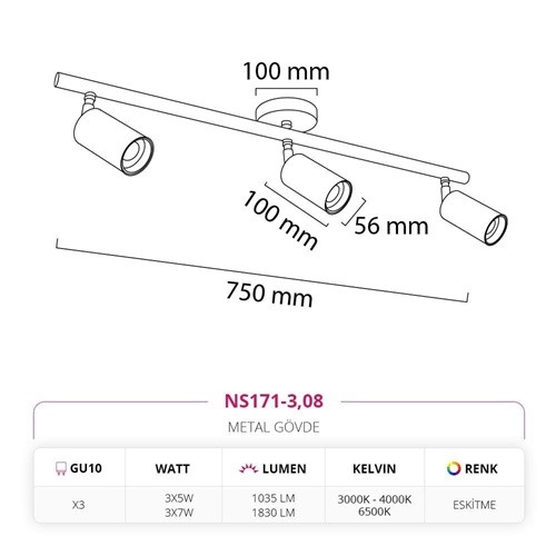 Nevo Sıva Üstü Üçlü LED Spot Eskitme NS171-3