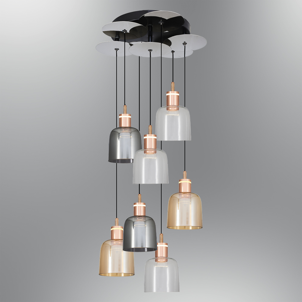 LUCEA 1438-74-06 GERA 6 LI BAKIR-SİYAH AVİZE 6XE27